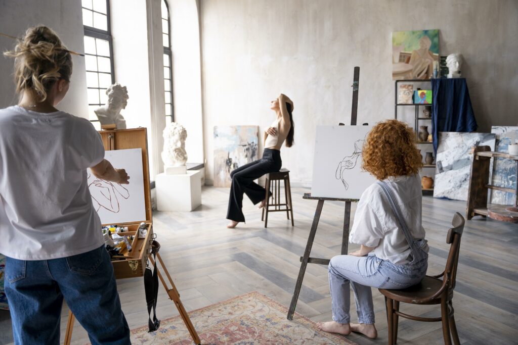 Atelier de dessin, lieu de rencontres où chacun trouve son rythme créatif.